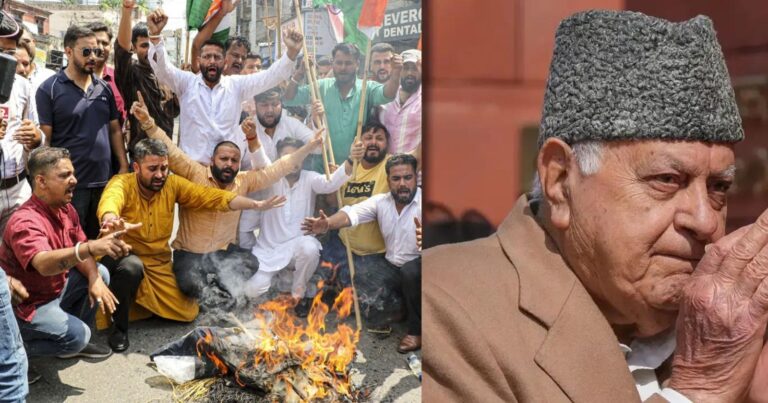 Jammu, CNI: The Bharatiya Janata Yuva Morcha and Rashtriya Bajrang Dal staged protests here on Tuesday against National Conference president …