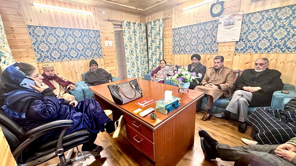 Party President Mehbooba Mufti held a comprehensive discussion with senior leaders on current issues in J&K, exploring measures for the future. Stressing solidarity, she called on leaders to stand united with the people during this critical period. The meeting included senior leader and party vice president Ab Rehman Veeri, Ch. Ab Hameed, chairman parliamentary board Mohd Sartaj Madni, General Secretaries Gh Nabi Lone Hanjura, Sardar Amreek Singh Reen, Ms. Asiya Naqash, Adv Khurshid Iqbal, and former ministers, senior party leaders Ab. Gaffar Sofi, former minister and Sr leader Naeem Akhtar, and youth president Waheed Para.CNI