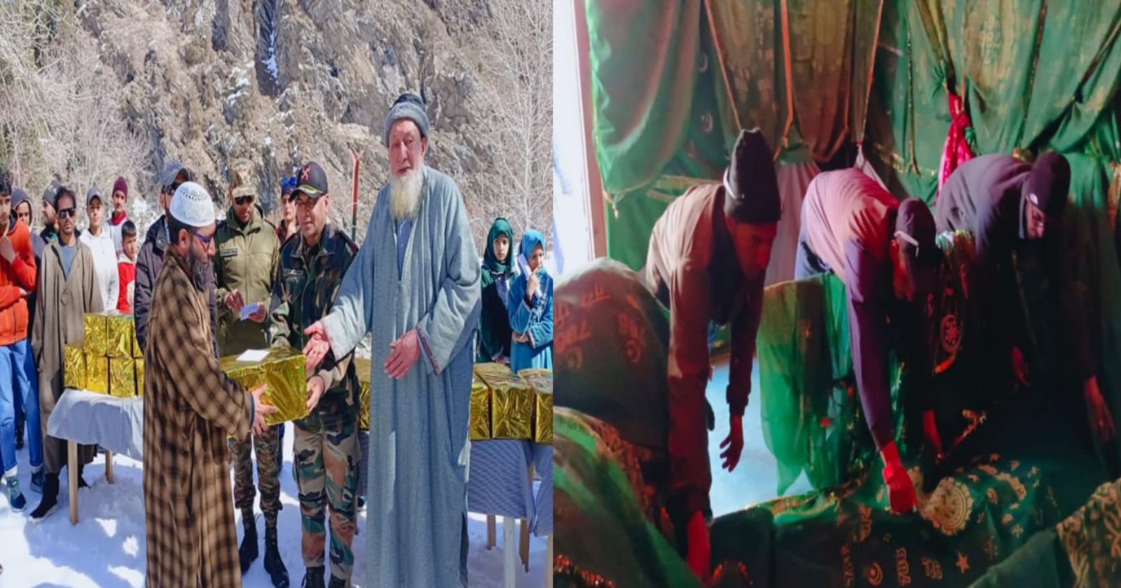 Bandipora : The Indian Army Rana Battalion Bagtore on Friday distributed gifts to specially abled persons after visiting peer Baba shrine in Bagtore area in Gurez valley of Bandipora district