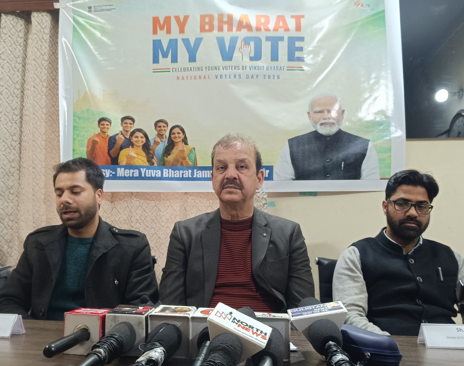 Addressing a press conference here, Sh. Nisar Ahmed Butt, State Director MY Bharat J&K and Ladakh said that the programme is a nationwide youth mobilization initiative aimed at promoting informed, ethical, and participative electoral engagement, with special focus on first-time voters. By integrating voter awareness with physical fitness and community participation, the initiative seeks to transform National Voters Day into a vibrant mass movement led by youth. He called upon all young citizens to actively participate in the National Voters’ Day Padayatras 2026 that are being organized in different districts of J&K and Ladakh and contribute meaningfully to strengthening India’s democratic fabric.
