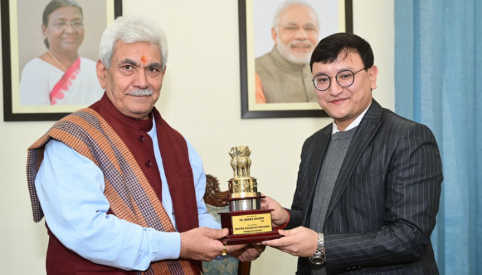 JAMMU, JANUARY 09: Lieutenant Governor Shri Manoj Sinha and the officers of Raj Bhawan bid farewell to Shri Minga Sherpa, …